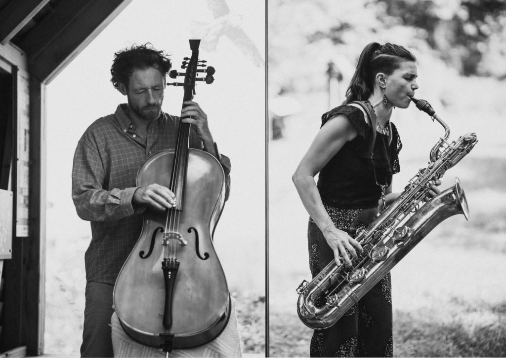 SUPERPÊCHE est un duo de musiques improvisées issu d’une châtaigneraie corrézienne. Composé de Laure Fischer au saxophone baryton et d’Alexis Thépot au violoncelle à cordes sympathiques, le duo a choisi de se confronter au défi du format duo pour se mettre à nu, sans filet… à poil, en acoustique.